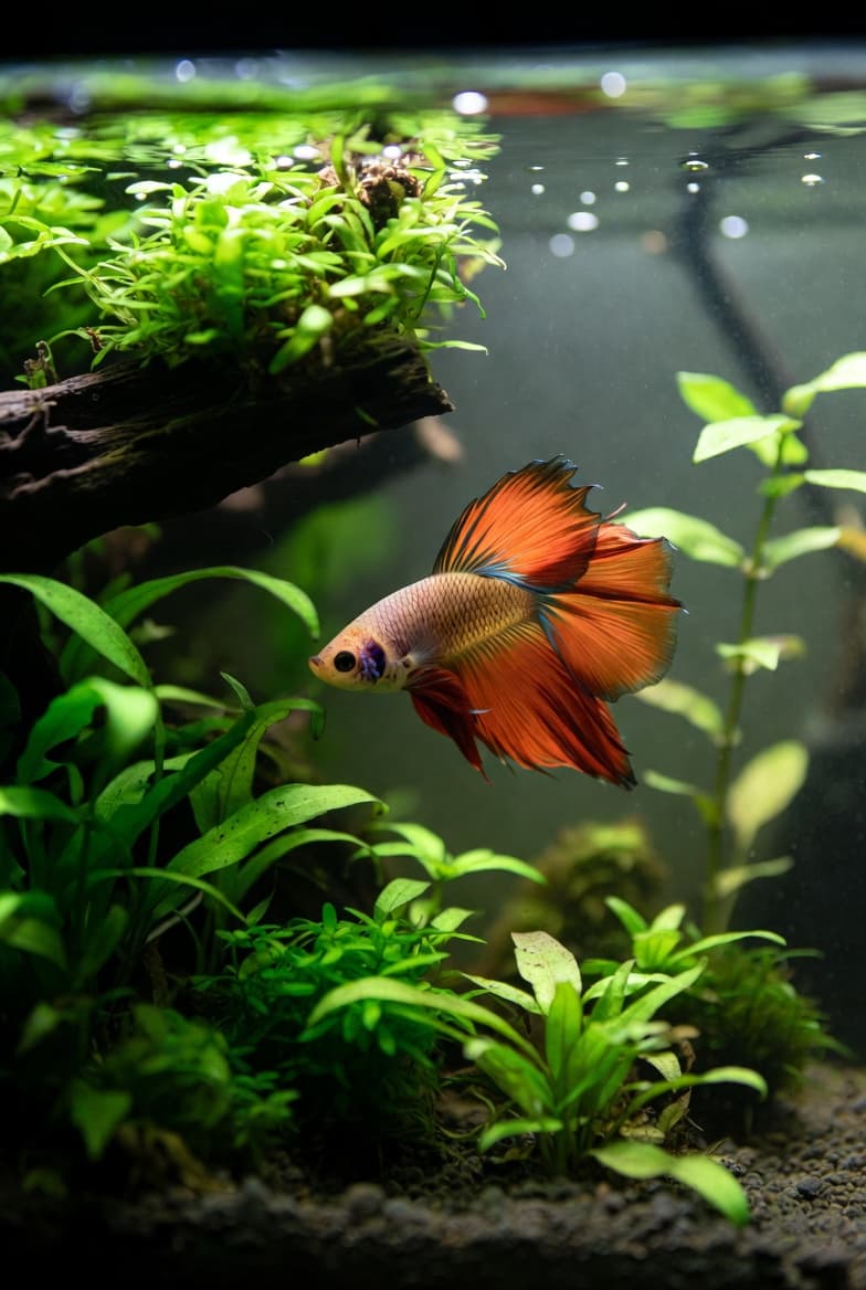 Check Betta Paradise TankA compact, beautifully planted sanctuary designed specifically for a single Betta fish, with gentle filtration and plenty of resting spots near the surface. Low-light plants like Anubias, Java Fern, and Java Moss are attached to a small piece of driftwood, providing cover without overcrowding the space. This nano setup creates the perfect environment for showcasing your Betta's personality and finnage.